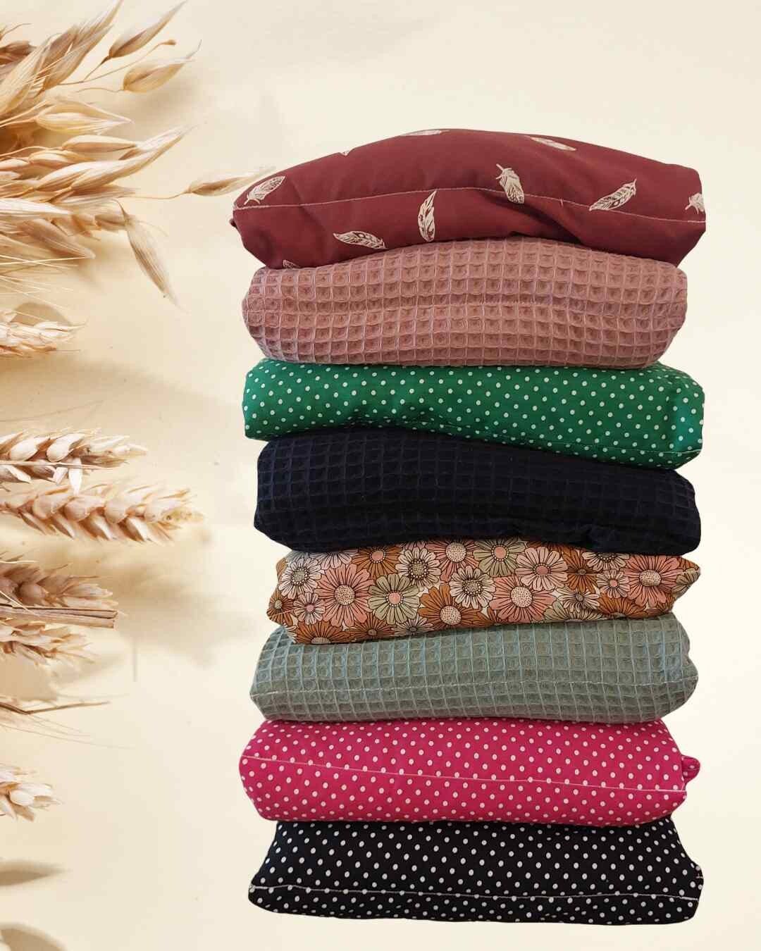 * Verkrijgbaar in diverse printjes. Katoen en wafelstof.